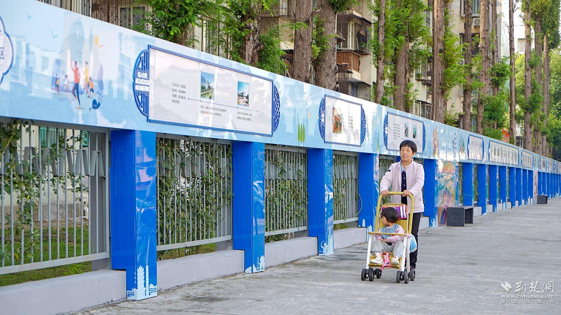 圍墻和彩繪也成了亮點。專業(yè)團隊在相鄰居民樓外墻繪制325平方米主題壁畫——一面呈現(xiàn)“魅力東西湖”的城市風(fēng)貌,一面展現(xiàn)“幸福新常青”的生活圖景,成為社區(qū)新地標(biāo)。