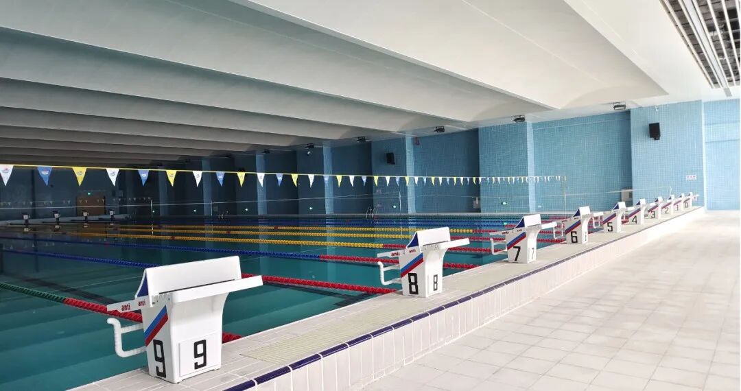 室外設(shè)有田徑場、籃球場、足球場、網(wǎng)球場等,室內(nèi)設(shè)有游泳館、羽毛球場、排球場、健身房等,可滿足師生日常體育運動和團體活動需求。