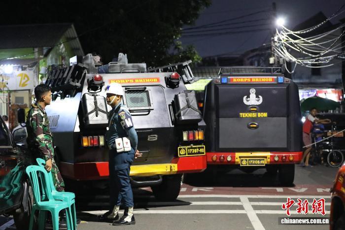 7日18時許,中新社記者穿過多道警戒線抵達現(xiàn)場,看到涉事的雅加達國立第72高級中學已被封鎖,多名荷槍實彈的軍警在校門口警戒。裝甲車、警車、救護車、消防車等??吭谥車?,不時有軍警人員進出。