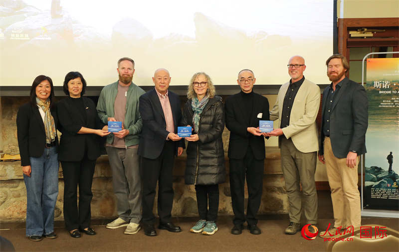 《斯諾·未竟之路》出品方與美國(guó)海倫·福斯特·斯諾基金會(huì)互贈(zèng)禮品。人民網(wǎng)記者 李志偉攝