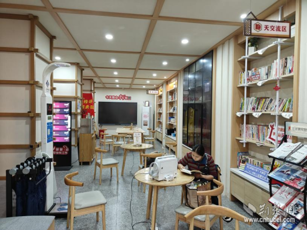走進(jìn)這個(gè)330平方米的升級(jí)版驛站,變化隨處可見。這里不僅有基礎(chǔ)的微波爐、冰箱、沙發(fā)等,更添置了共享淋浴間、聽書機(jī)、直飲機(jī)、空調(diào)等。曾經(jīng)的后廳,如今被打造成一個(gè)多功能“潮玩空間”——午休時(shí)間,拉上窗簾,這里是配備了舒適躺椅的靜謐午睡室;工作之余,這里又變身為熱鬧的“社交俱樂部”,大家可以一起看電視、玩桌游,徹底放松身心。