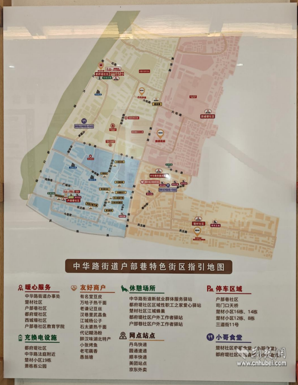 這一切的背后,是“戶部巷老茶館”聯(lián)席議事制度的有力支撐。騎手停車難?社區(qū)立即協(xié)調(diào),騰挪出專用停車位。取餐高峰期擁擠?社區(qū)出面與商戶溝通,促成“騎手優(yōu)先”的默契。社區(qū)還聯(lián)合騎手們,共同繪制了一份戶部巷友好街區(qū)地圖,清晰標(biāo)注出“小哥食堂”、友好商家、充換電點(diǎn)等關(guān)鍵位置,成為騎手們?nèi)耸忠环莸摹肮ぷ鲗毜洹?。從“關(guān)鍵小事”到“發(fā)展大事”,騎手們的建議真正做到了“件件有回應(yīng),事事有著落”。
