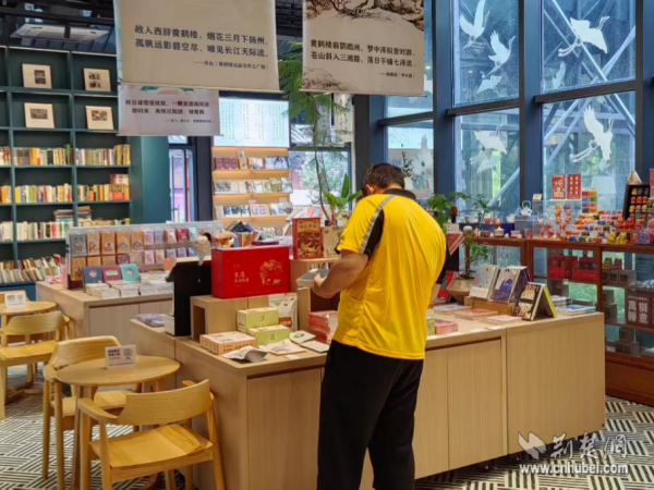 外賣小哥持積分兌換的購書券挑選書籍。 通訊員供圖