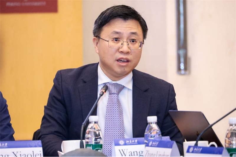 北京大學(xué)國(guó)際關(guān)系學(xué)院教授、社會(huì)科學(xué)部副部長(zhǎng)兼智庫中心管理辦公室主任、中外人文交流研究基地執(zhí)行主任王棟發(fā)言。主辦方供圖