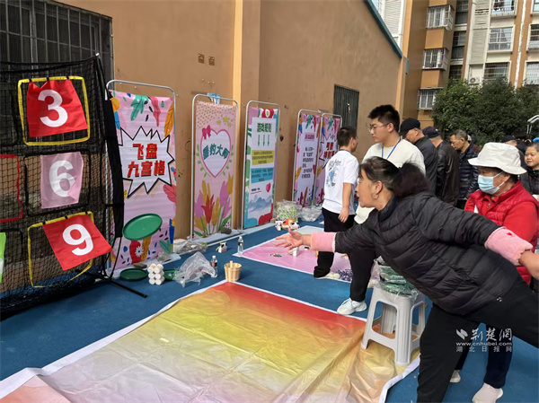 游戲項(xiàng)目互動(dòng)區(qū)同樣精彩紛呈。圍繞“趣玩”屬性,設(shè)置了弓箭神射手、飛盤九宮格、垂釣大師等多款游玩項(xiàng)目,為居民們搭建起輕松愜意的交流平臺(tái)。大家在游玩中放松身心,主動(dòng)分享興趣心得,不同團(tuán)體間的壁壘被打破,現(xiàn)場(chǎng)歡聲笑語(yǔ)不斷。