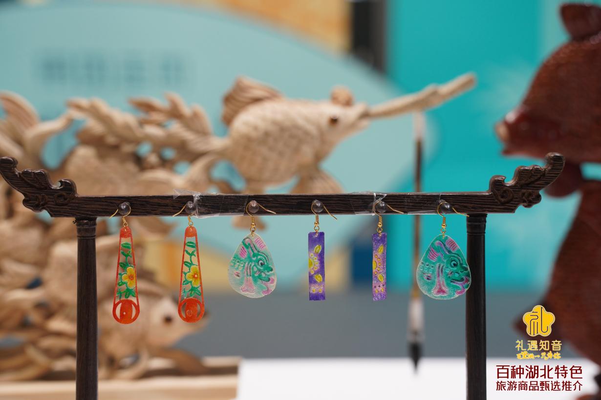 在“非遺精粹”區(qū),傳統(tǒng)手藝煥發(fā)全新生命力。楚韻真絲方巾,把江漢風(fēng)光織進(jìn)絲緞;土家織錦西蘭卡普,將撞色美學(xué)融入設(shè)計(jì);非遺皮影被微縮成藝術(shù)耳環(huán),華容土布制成的保齡球手提包,將時(shí)尚度拉滿;還有曾侯乙編鐘套裝、黃鶴樓詩詞指甲鉗等精巧小物,令人愛不釋手——它們不只是物件,更是可穿戴、可分享的荊楚文化。
