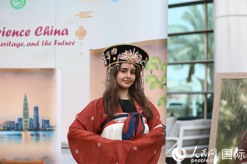 沙特學(xué)生體驗(yàn)穿漢服。人民網(wǎng)記者 任皓宇攝