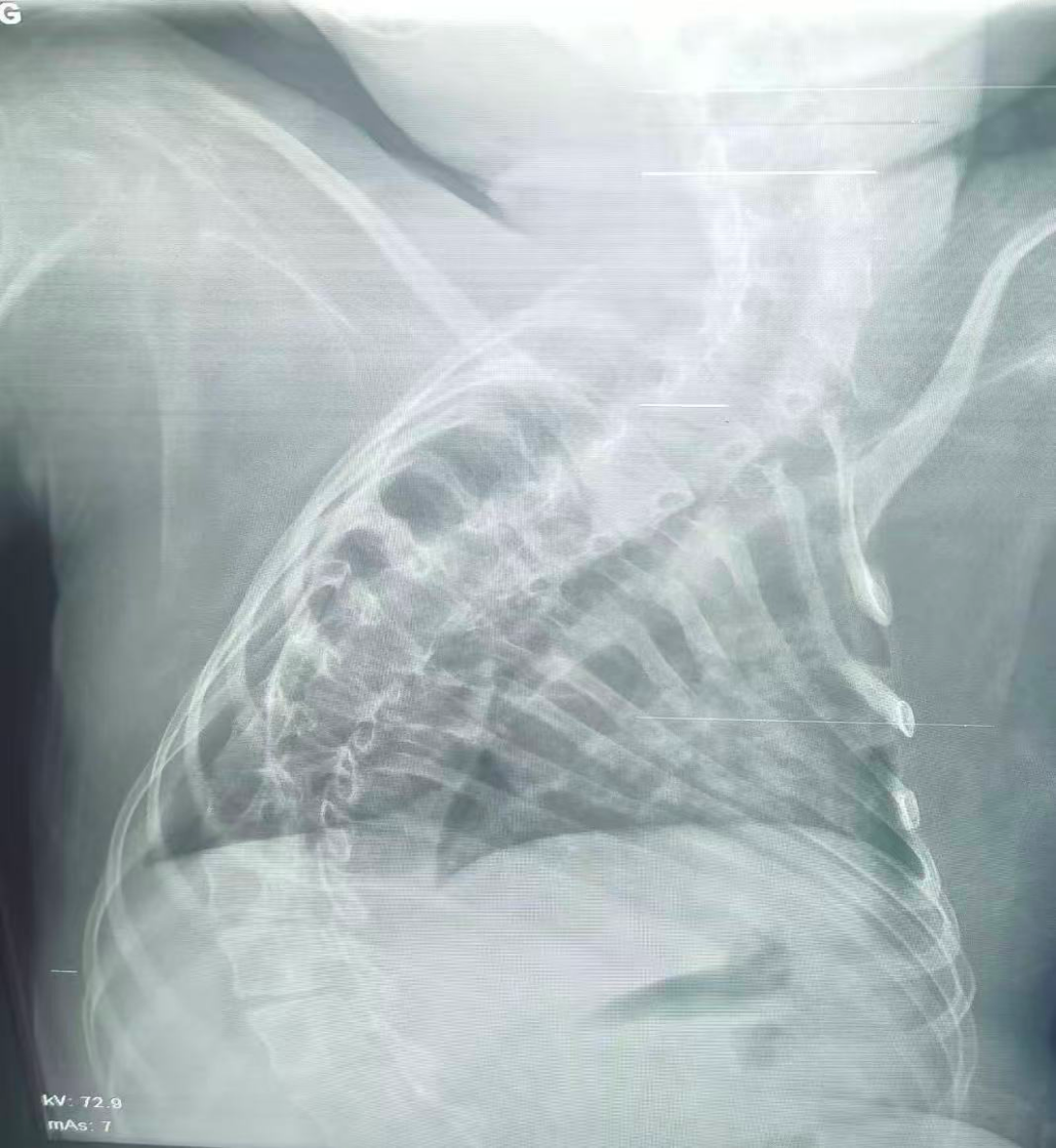 該患兒因患脊髓性肌萎縮癥長(zhǎng)期臥床,呼吸肌已嚴(yán)重?zé)o力,自主呼吸微弱且?guī)缀鯁适Э人耘盘的芰?,此次并發(fā)支氣管肺炎后,肺部感染迅速加重,生命已然懸于一線。更棘手的是,嚴(yán)重的脊柱側(cè)彎使患兒胸廓畸形、氣道解剖結(jié)構(gòu)明顯移位,常規(guī)纖支鏡進(jìn)鏡路徑完全失效,扭曲狹窄的氣道如同縱橫交錯(cuò)的“迷宮”,每一步操作都必須精準(zhǔn)到毫米級(jí)別。