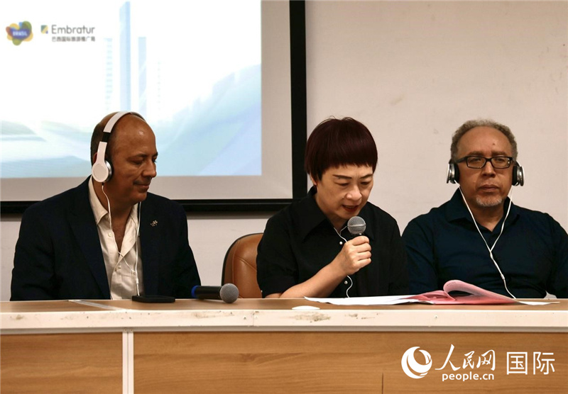 巴西國(guó)際旅游推廣局國(guó)際市場(chǎng)負(fù)責(zé)人安德烈·內(nèi)托發(fā)表致辭。人民網(wǎng)記者 宋亦然攝