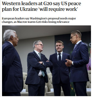 中新網(wǎng)11月23日電 據(jù)英國《衛(wèi)報》報道,當(dāng)?shù)貢r間22日,歐洲理事會、歐盟委員會、德國、法國、加拿大、愛爾蘭、意大利、西班牙、荷蘭、英國、挪威、芬蘭等多方發(fā)表聯(lián)合聲明,認(rèn)為美方就結(jié)束烏克蘭危機(jī)提出的“28點”新計劃可以作為基礎(chǔ),但仍需要額外的工作。