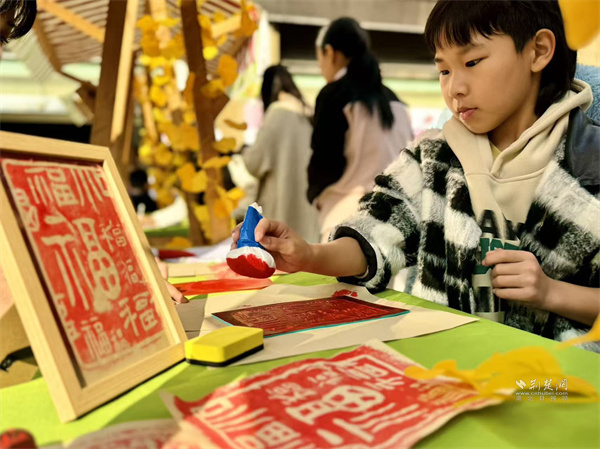 中藥香囊攤位散發(fā)著艾草、薄荷等香料的清香,居民們在志愿者老師的指導下,根據(jù)個人喜好,自由搭配制作專屬香囊。福字拓印DIY區(qū),小朋友們手持拓印工具,親手制作寓意吉祥的福字。