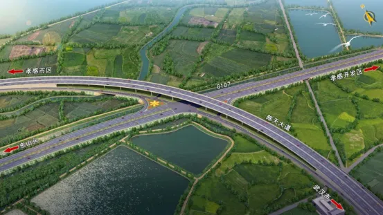 作為孝感融入武漢都市圈的重要基礎(chǔ)設(shè)施,陳天大道不僅是關(guān)鍵的集疏運(yùn)通道,更將構(gòu)建“公路+水運(yùn)+航空”現(xiàn)代化多式聯(lián)運(yùn)體系,成為推動(dòng)漢孝兩地深度融合的“新引擎”。項(xiàng)目起于孝武大道與S419相交處,向東延伸,下穿漢孝城際鐵路,上跨G107,最終接市臨空經(jīng)濟(jì)區(qū)已建段,止于界河大橋,全長(zhǎng)19.399公里,總投資15.56億元。