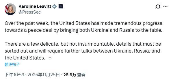 △美國白宮新聞秘書萊維特25日發(fā)布聲明稱:“還有一些棘手但并非不可克服的關(guān)鍵細(xì)節(jié)亟待解決“。
