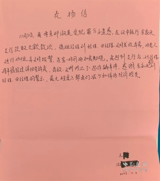 收到居民的表揚信。 通訊員供圖