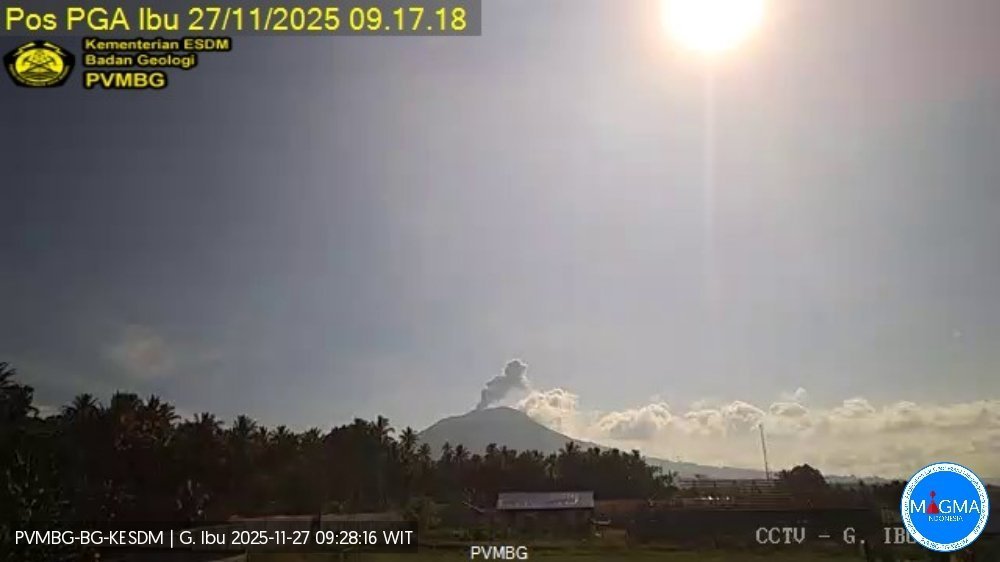 據(jù)印度尼西亞火山和地質(zhì)減災(zāi)中心消息,當(dāng)?shù)貢r間11月27日9時17分,印尼北馬魯古省伊布火山噴發(fā)?;鹕交抑呒s800米,噴發(fā)持續(xù)時間為57秒。(總臺記者 李琳)