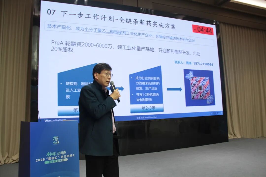 項目路演作為核心環(huán)節(jié),六大高精尖項目同臺競技,展現從“0到1”的突破性創(chuàng)新實力??拱┘{米脂質體制劑新材料項目由深耕生物醫(yī)藥領域多年的楊鋒博士領銜,其獨家單分散小分子量PEG工業(yè)化量產技術,一舉突破脂質體納米顆粒(LNP)生產瓶頸,填補國內外產業(yè)化空白。公司主營PEG鏈接劑、ADC Linker、mRNA疫苗輔料等核心產品,客戶涵蓋諾華、禮來等國際巨頭,已獲國家級科技型中小企業(yè)認定,未來聚焦個性化腫瘤治療全球化布局。