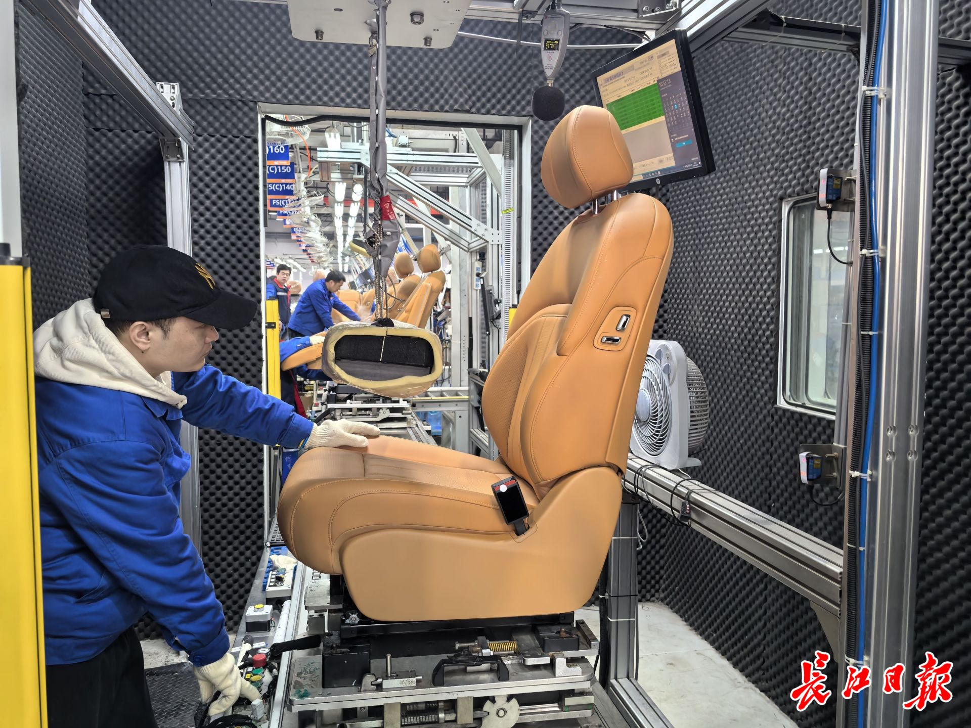 走進武漢天成自控生產(chǎn)基地,樓上,研發(fā)人員正在為客戶即將上市的新車型研發(fā)汽車座椅;樓下,自動化總裝生產(chǎn)線高效運轉(zhuǎn),300余名工人在各自崗位上有序作業(yè)。