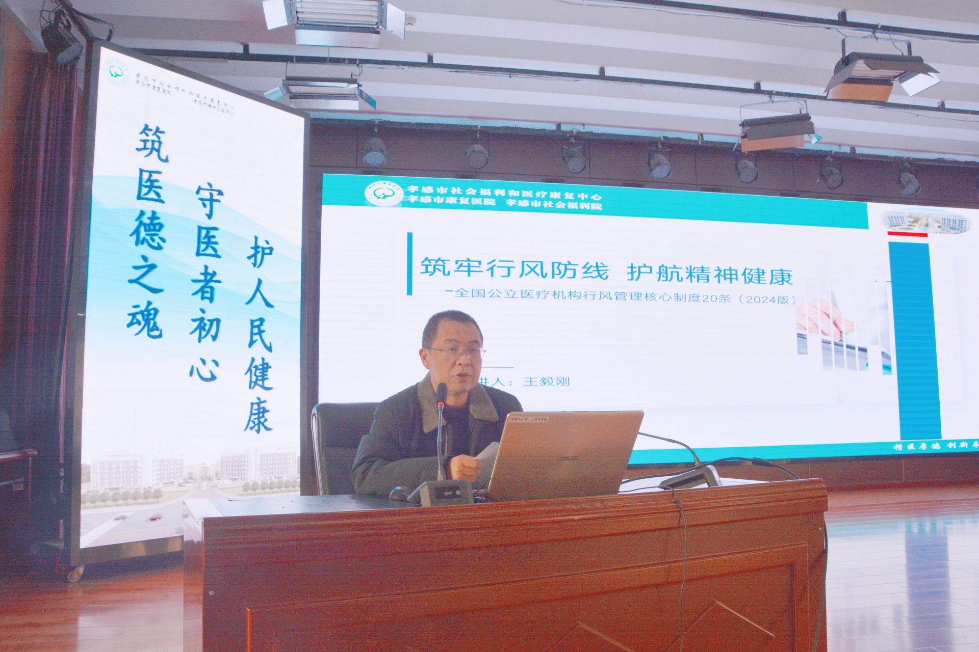 荊楚網(wǎng)(湖北日?qǐng)?bào)網(wǎng))訊(通訊員 周?。槌掷m(xù)貫徹落實(shí)孝感市衛(wèi)生健康委員會(huì)《關(guān)于組織開展全市“醫(yī)德醫(yī)風(fēng)學(xué)習(xí)月”通知》文件精神,推動(dòng)醫(yī)德醫(yī)風(fēng)建設(shè)走深走實(shí),12月16日下午,孝感市市社會(huì)福利和醫(yī)療康復(fù)中心(以下簡稱“中心”)在門診六樓大會(huì)議室舉行“醫(yī)德醫(yī)風(fēng)學(xué)習(xí)月”第二次專題培訓(xùn),“中心”領(lǐng)導(dǎo)班子成員及全體干部職工參加了培訓(xùn)。