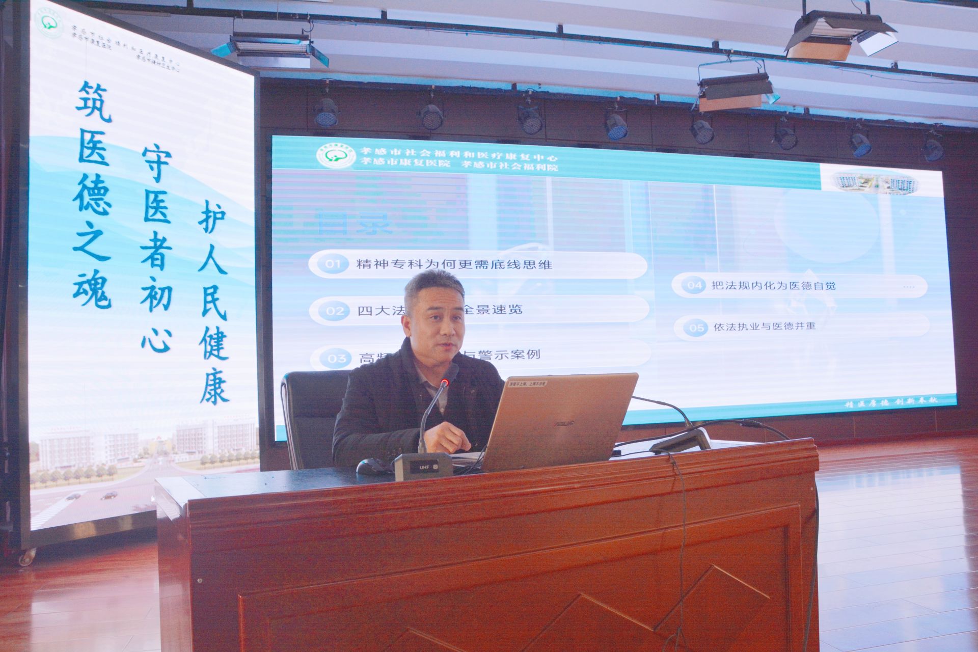 “中心”副主任蘭博以《精神衛(wèi)生領(lǐng)域的法律紅線與職業(yè)底線》為題進(jìn)行專題講解。他以《精神衛(wèi)生法》等法律法規(guī)為切入口,深入剖析了精神科診療、患者權(quán)益保障、醫(yī)療安全等方面易觸及的法律風(fēng)險(xiǎn)和倫理挑戰(zhàn)。通過真實(shí)案例解析,清晰劃定了職業(yè)行為的法律邊界與道德底線,引導(dǎo)干部職工強(qiáng)化法治思維、樹立敬畏之心,在恪守專業(yè)準(zhǔn)則、規(guī)范執(zhí)業(yè)行為的基礎(chǔ)上,妥善應(yīng)對(duì)復(fù)雜診療情境,既切實(shí)維護(hù)患者合法權(quán)益,也有效保障自身執(zhí)業(yè)安全。