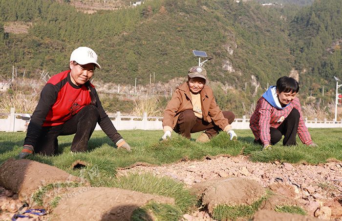 12月16日,巴東縣沿渡河鎮(zhèn)神農(nóng)公園建設(shè)現(xiàn)場,工人們忙著鋪設(shè)草坪、栽植綠化樹,挖掘機(jī)揮舞長臂轉(zhuǎn)運(yùn)泥土,一派忙碌的建設(shè)景象。