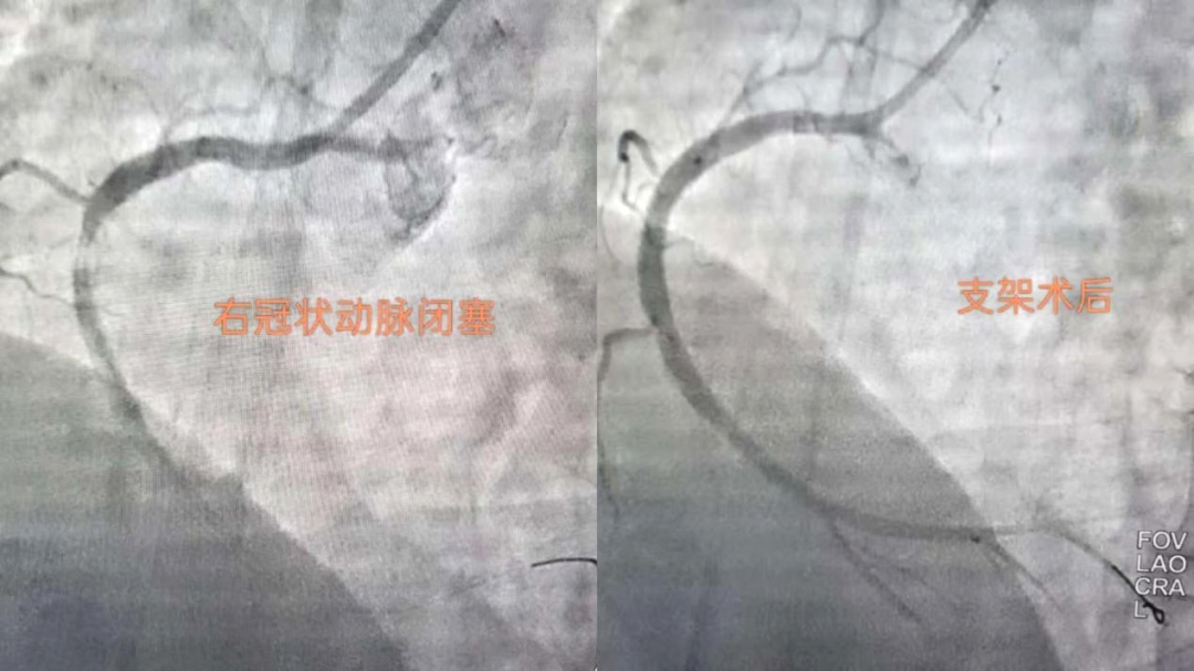 搶時(shí)間就是搶生命!06:46穿刺,06:47成功,06:49冠脈造影明確:右冠狀動脈中段完全閉塞。導(dǎo)絲迅速通過,支架精準(zhǔn)植入,07:03血流恢復(fù),手術(shù)成功結(jié)束。患者胸痛明顯緩解,生命體征趨于平穩(wěn)。從入院到血管再通,不到兩小時(shí)。