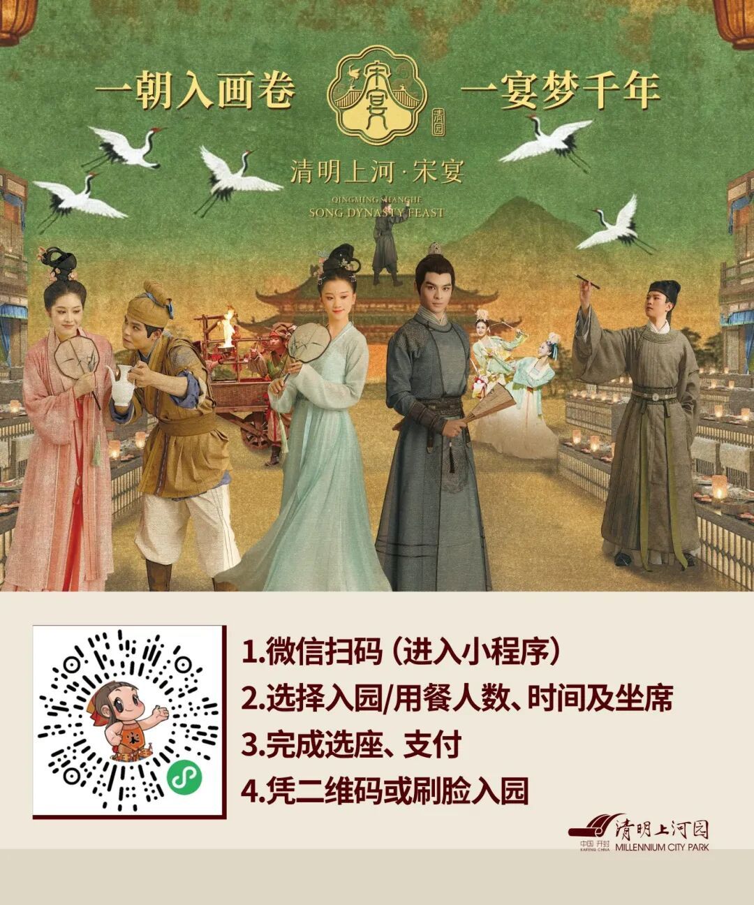 一朝入畫(huà)卷,一宴夢(mèng)千年。清明上河園將圍繞宋文化繼續(xù)創(chuàng)新,深入挖掘,帶來(lái)更多令人耳目一新的旅游產(chǎn)品?!肚迕魃虾印に窝纭菲诖c您執(zhí)筆入畫(huà),再續(xù)風(fēng)雅!品人間至味,悟大宋清歡。查看下圖,預(yù)約入宴!赴一場(chǎng)風(fēng)雅與市井的千年之約。