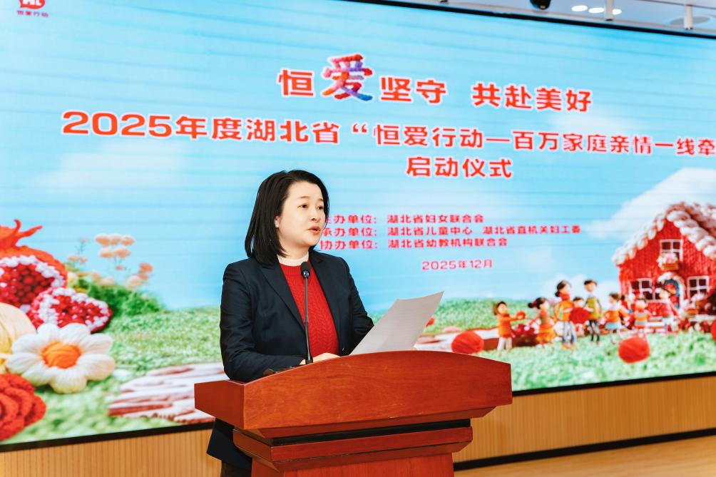 荊楚網(wǎng)(湖北日報網(wǎng))訊(通訊員 沈芙蓮)12月26日,2025年度湖北省“恒愛行動——百萬家庭親情一線牽”公益活動啟動儀式在省婦女兒童活動中心舉行,來自省直各部門、愛心企業(yè)、社會組織的愛心人士代表近百人參加,省婦聯(lián)黨組成員、副主席張莉君出席啟動儀式并講話。