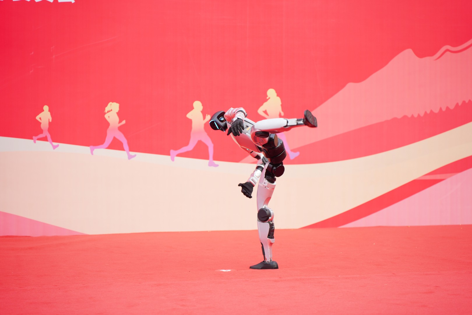 啟動(dòng)儀式在青春活力的氛圍中拉開帷幕。武漢體育學(xué)院的啦啦操表演展現(xiàn)了新時(shí)代青年蓬勃向上的精神風(fēng)貌。武漢理工大學(xué)帶來的太極拳及武術(shù)表演盡顯中華傳統(tǒng)體育文化魅力;智能機(jī)器人登臺(tái)起舞,以精準(zhǔn)動(dòng)感的舞姿展現(xiàn)科技與運(yùn)動(dòng)的創(chuàng)新融合,隨后更化身“科技領(lǐng)操員”,與健身教練協(xié)同帶領(lǐng)全場(chǎng)熱身,生動(dòng)演繹了人機(jī)協(xié)作的智能健身場(chǎng)景。湖北大學(xué)舞龍舞獅隊(duì)壓軸登場(chǎng),精湛技藝將現(xiàn)場(chǎng)氣氛推向高潮。活動(dòng)現(xiàn)場(chǎng),第十五屆全國(guó)運(yùn)動(dòng)會(huì)男子100米、男子4×100米接力冠軍李澤洋發(fā)出全民健身倡議,“用體育鍛煉點(diǎn)亮生活,為支點(diǎn)湖北建設(shè)注入全民健身力量?!?/p>