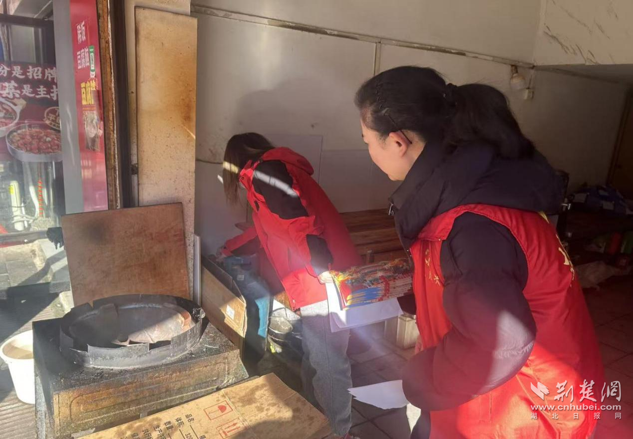 社區(qū)工作人員對商鋪進行燃氣安全檢查。通訊員供圖