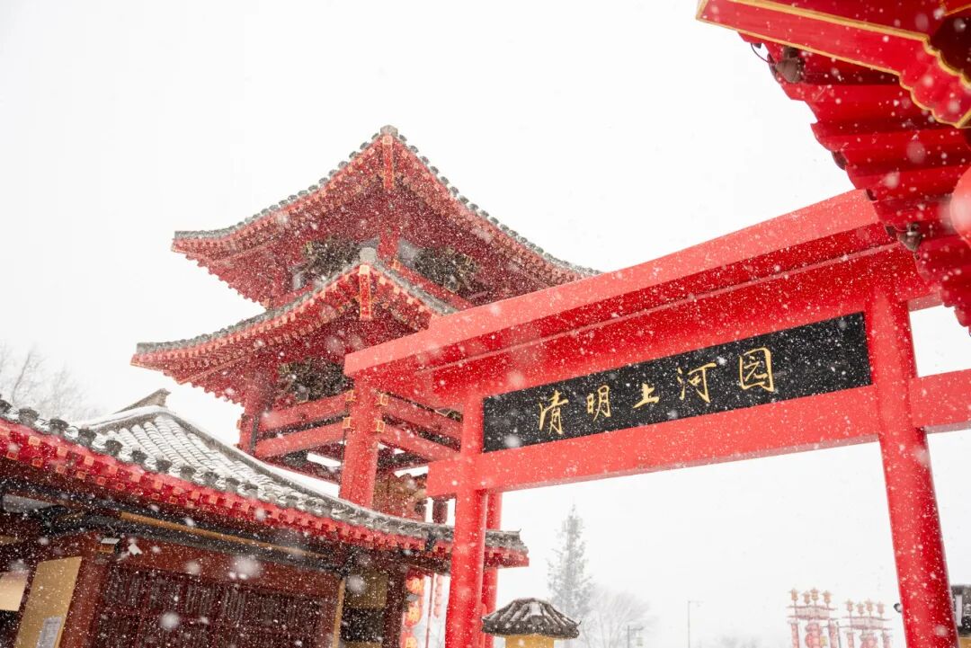 當雪花開始飄落,開封便不再是開封,它成了那個魂牽夢繞的汴京。而清明上河園,也化作了一幅雪景版的《清明上河圖》,仿佛一位洗凈鉛華的古典美人,以其獨有的靜謐絕色,向每一位喜歡雪的人發(fā)出邀請:此刻的清園,更值得一來。