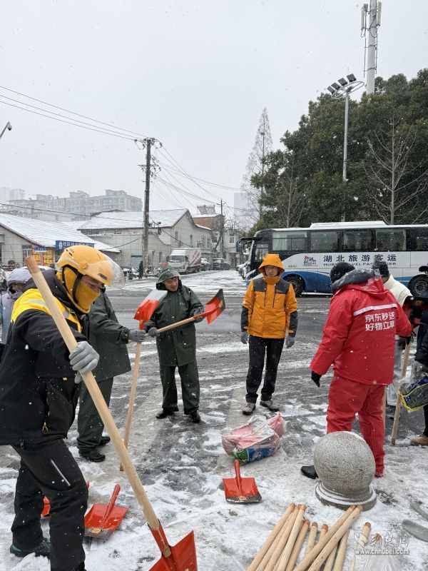 值得一提的是,這群外賣騎手不僅是城市的“奔跑者”,也是冰雪中的“志愿紅”。在近日的鏟雪除冰行動中,他們主動放棄休息時間,響應(yīng)街道號召,自發(fā)拿起鐵鍬、掃帚,深入背街小巷清理積雪。寒風(fēng)凜冽,他們不顧雙手凍得通紅,或彎腰揮鍬鏟除積冰,或俯身清掃殘雪碎冰,還不時提醒過往居民“路滑慢走”,用實際行動為轄區(qū)治理注入溫暖力量。