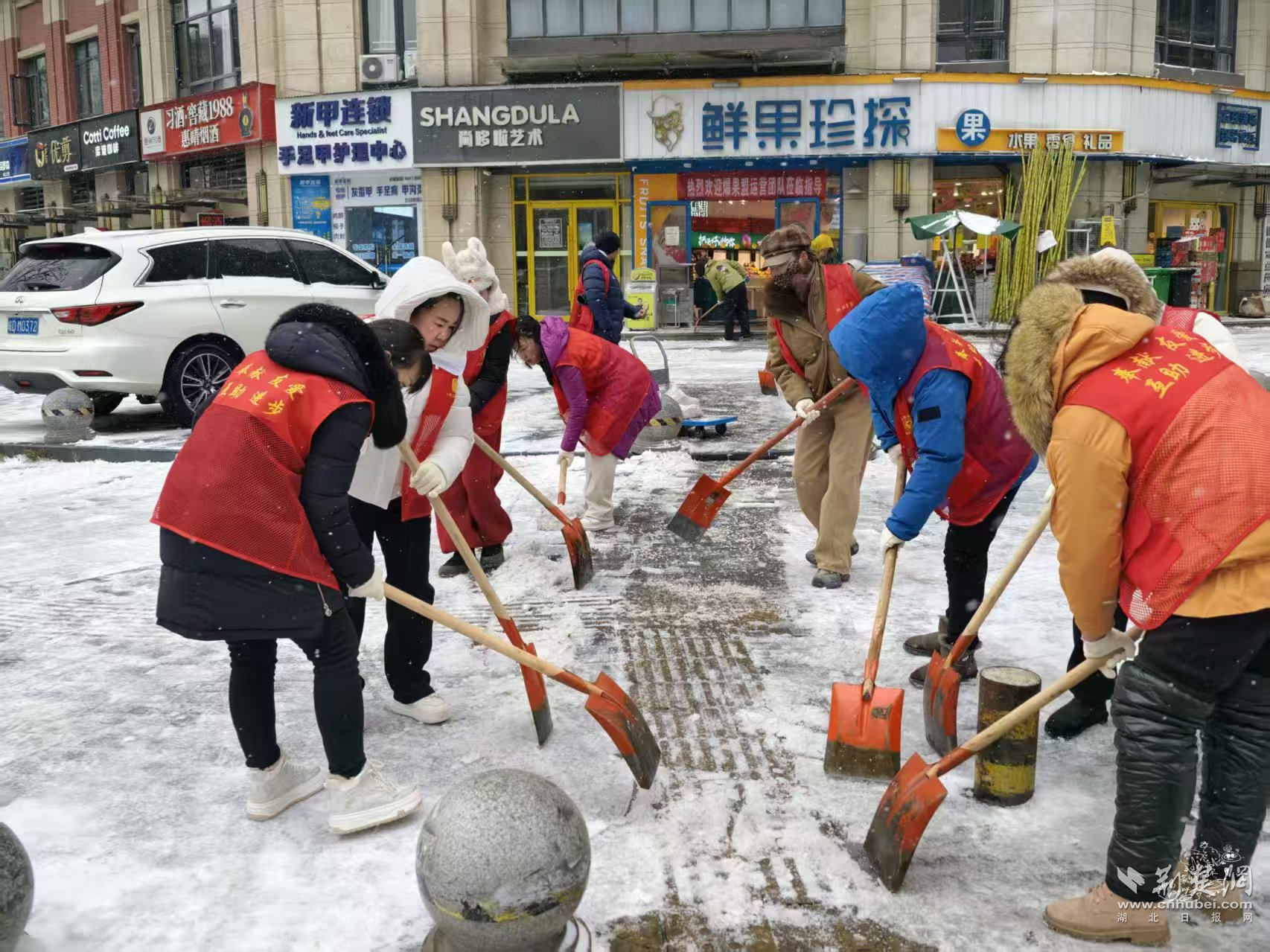 凜冽寒風(fēng)中,一抹抹“志愿紅”成為冬日里最溫暖的風(fēng)景。鐵鍬、雪鏟、掃帚齊上陣,大家分工協(xié)作、默契配合,有人清掃路面浮雪,有人鏟除頑固冰層,有人精準(zhǔn)撒布融雪劑防止復(fù)凍,還有人專門(mén)在單元門(mén)口、坡道、背街小巷等易滑點(diǎn)位反復(fù)排查、重點(diǎn)清理。