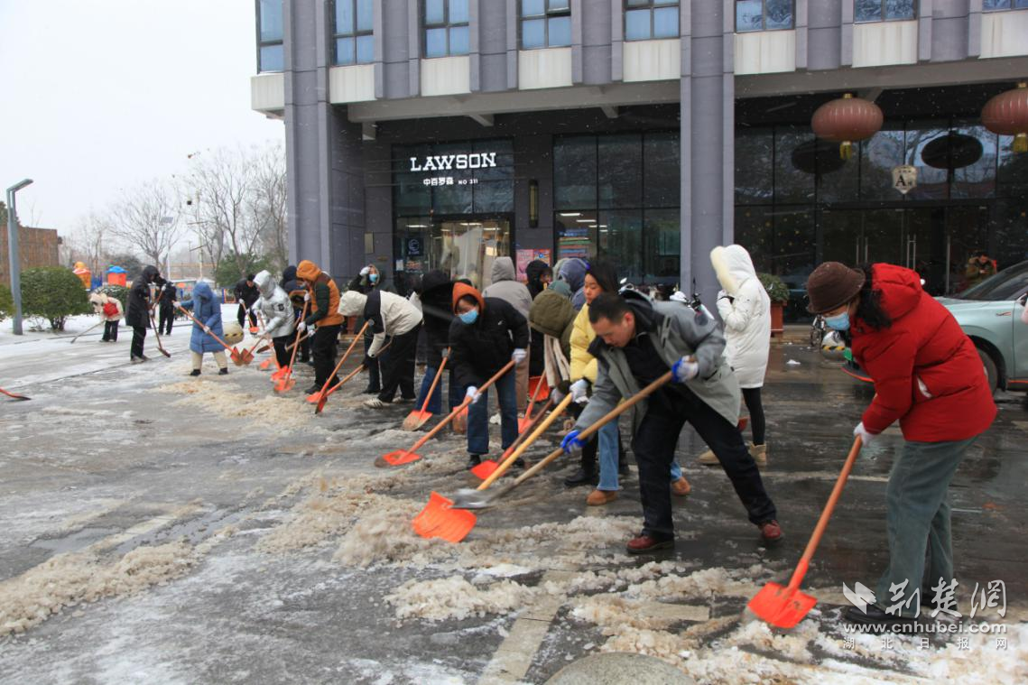 在洪山獅子山社區(qū)、東湖高新區(qū)豹澥街道、漢陽(yáng)區(qū)江堤及四新街道、東湖風(fēng)景區(qū)各村場(chǎng),物業(yè)、居民志愿者在市民在確保安全的前提下,就近參與掃雪鏟冰、鋪設(shè)草墊,對(duì)居民小區(qū)出入口、單元門棟、地下車庫(kù)坡道等關(guān)鍵區(qū)域積雪積冰進(jìn)行清理,對(duì)轄區(qū)幼兒園、小學(xué)、初中等學(xué)校周邊路段開展融雪除冰,確保居民出行暢通,共同維護(hù)美麗武漢。