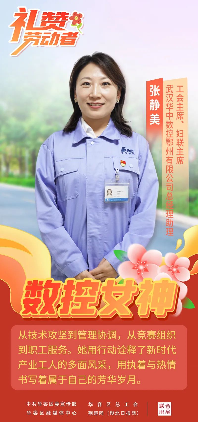在機(jī)器轟鳴的數(shù)控車間里,她是職工心中的“暖心人”。是鄂州市五一勞動(dòng)獎(jiǎng)?wù)芦@得者,既能帶領(lǐng)團(tuán)隊(duì)提技創(chuàng)效助力核心技術(shù)攻關(guān),又能組織豐富多彩的職工活動(dòng)。近日,記者來(lái)到武漢華中數(shù)控鄂州有限公司,見(jiàn)到該公司的“多面手”張靜美。這位從草原走出的80后北方姑娘,正用自己的方式實(shí)現(xiàn)跨界突破。