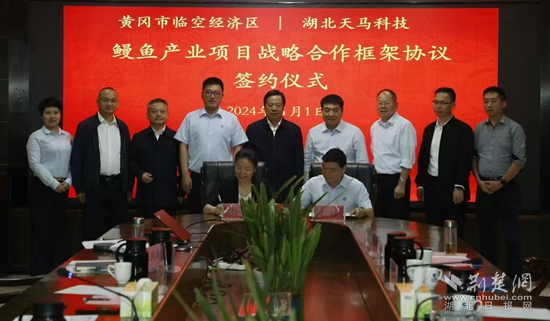 2024年11月1日,產(chǎn)業(yè)鏈領(lǐng)導(dǎo)工作小組趕赴福建與天馬科技集團(tuán)洽談合作,并順利簽訂戰(zhàn)略合作協(xié)議。根據(jù)協(xié)議,天馬科技集團(tuán)將在未來(lái)三至五年內(nèi)在黃岡繼續(xù)擴(kuò)大養(yǎng)殖規(guī)模,在現(xiàn)有基礎(chǔ)上擴(kuò)大一倍,屆時(shí)在黃岡總投資將達(dá)到20億元,養(yǎng)殖面積超過兩千畝,年產(chǎn)鰻魚兩萬(wàn)噸。同時(shí),新建一家烤鰻加工廠,并積極對(duì)接花湖機(jī)場(chǎng),讓活鰻直接上飛機(jī)出口。