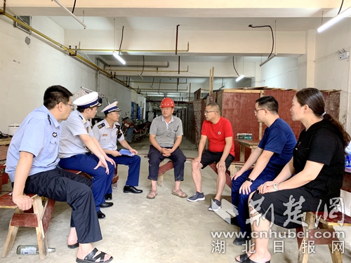 圖為執(zhí)法部門人員現(xiàn)場(chǎng)檢查辦公。 阮曉芬攝