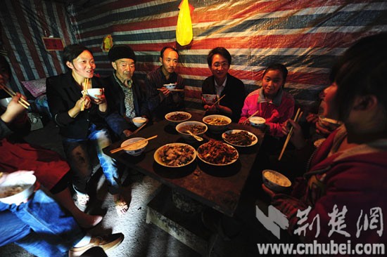 楊杰給羅歡夾菜。