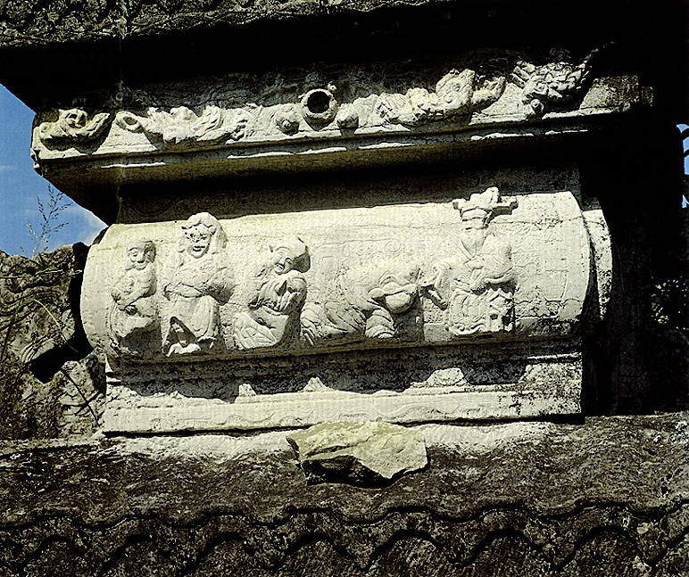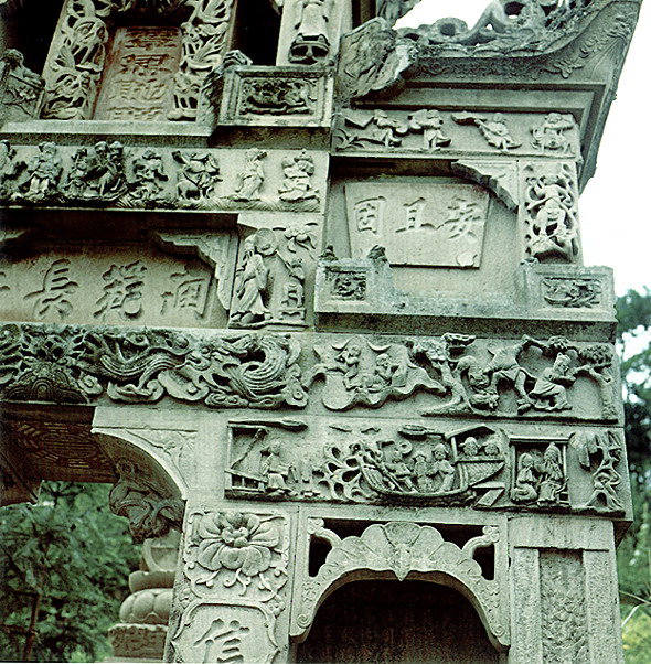 湖北省北有秦嶺東沿的武當(dāng)山、大別山、桐柏山,西接云貴高原,東南為幕阜山脈環(huán)繞,中部是寬闊的江漢平原。山區(qū)產(chǎn)石料,為石雕提供了豐富的用材;平原燒泥土制磚瓦,鐫以圖案美化建筑。民間石雕、磚雕分布,與地形大體一致。?凳耦}材廣泛,大致分為日常生活、倫理教化、神話傳說(shuō)、戲文故事、花鳥(niǎo)蟲魚、書文楹聯(lián)六類。